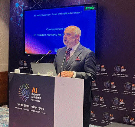 एस्टोनिया गणराज्य के राष्ट्रपति अलार कारिस ने इंडिया एआई इम्पैक्ट शिखर सम्मेलन 2026 में कहा – एआई के दायित्वपूर्ण उपयोग के लिए शिक्षा महत्वपूर्ण है