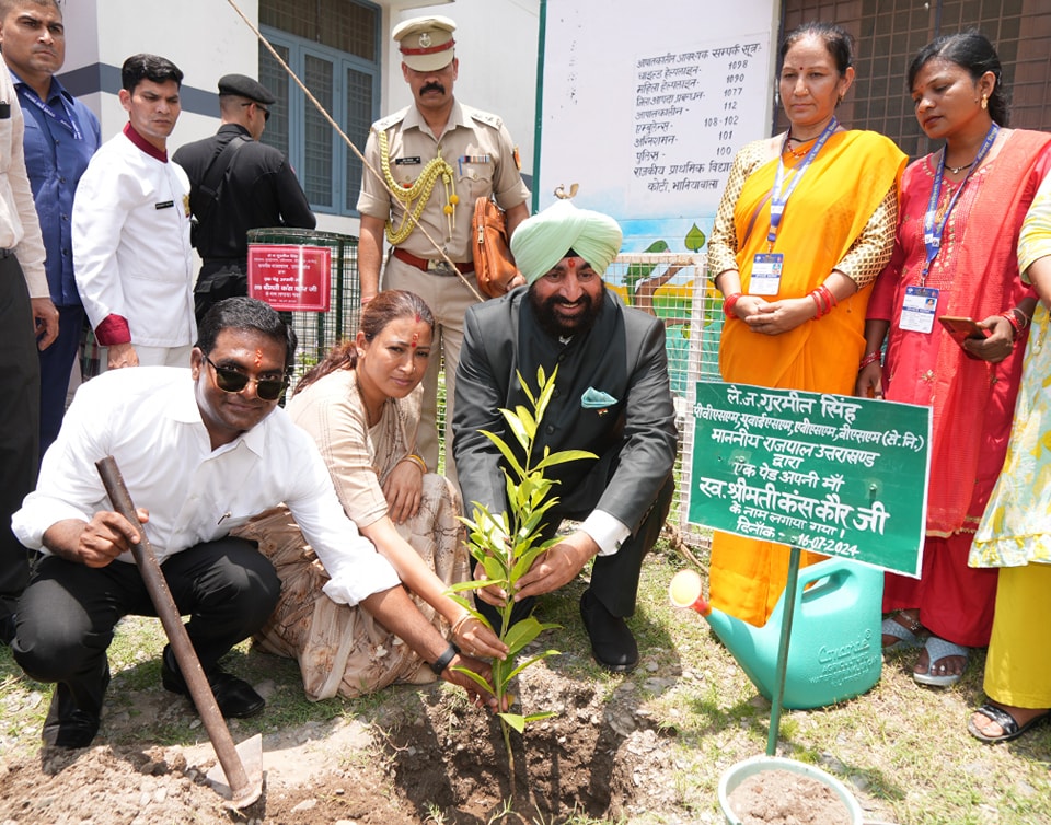 राज्यपाल लेफ्टिनेंट जनरल गुरमीत सिंह (से नि) ने आज आंगनवाड़ी केंद्र कोटी भानियावाला, देहरादून में महिला सशक्तीकरण एवं बाल विकास विभाग, उत्तराखण्ड द्वारा आयोजित ‘‘हरेला महोत्सव-एक पेड़ मां के नाम’’ कार्यक्रम में बतौर मुख्य अतिथि प्रतिभाग कर अपनी माताजी स्वर्गीय श्रीमती कंस कौर जी के नाम पर रुद्राक्ष का पौधा रोपित किया। इस अवसर पर इस परिसर में कुल 100 पौधे का रोपण किया गया।