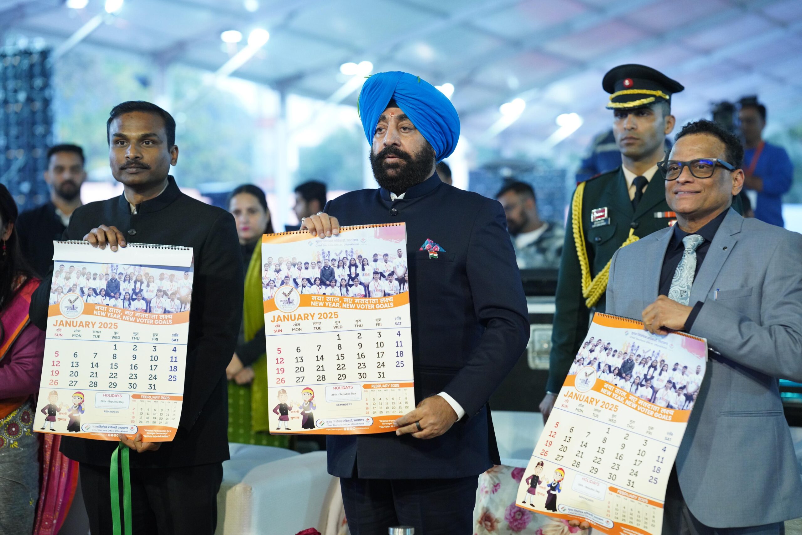 देहरादून। राष्ट्रीय मतदाता दिवस के अवसर पर रेसकोर्स बन्नू स्कूल में आयोजित कार्यक्रम में राज्यपाल लेफ्टिनेंट जनरल गुरमीत सिंह (सेनि) ने बतौर मुख्य अतिथि प्रतिभाग किया। इस अवसर पर राज्यपाल ने विभिन्न जनपदों द्वारा अलग-अलग थीम पर तैयार किए गए स्टॉल्स का भी अवलोकन किया। कार्यक्रम में राज्यपाल ने राज्य में निबंध, स्लोगन, पेंटिंग, क्विज एवं रील प्रतियोगिता में प्रथम द्वितीय एवं तृतीय स्थान प्राप्त करने वाले प्रतिभागियों को प्रणाम पत्र एवं नकद धनराशि देकर सम्मानित किया। इस अवसर पर मुख्य निर्वाचन अधिकारी कार्यालय के कैलेंडर, टी-शर्ट शुभंकर “सरूली-सुम्याल” का भी विमोचन किया। इस अवसर पर राज्यपाल ने लोकसभा सामान्य निर्वाचन 2024 में उत्कृष्ट कार्य करने वाले कार्मिकों को भी सम्मानित किया।