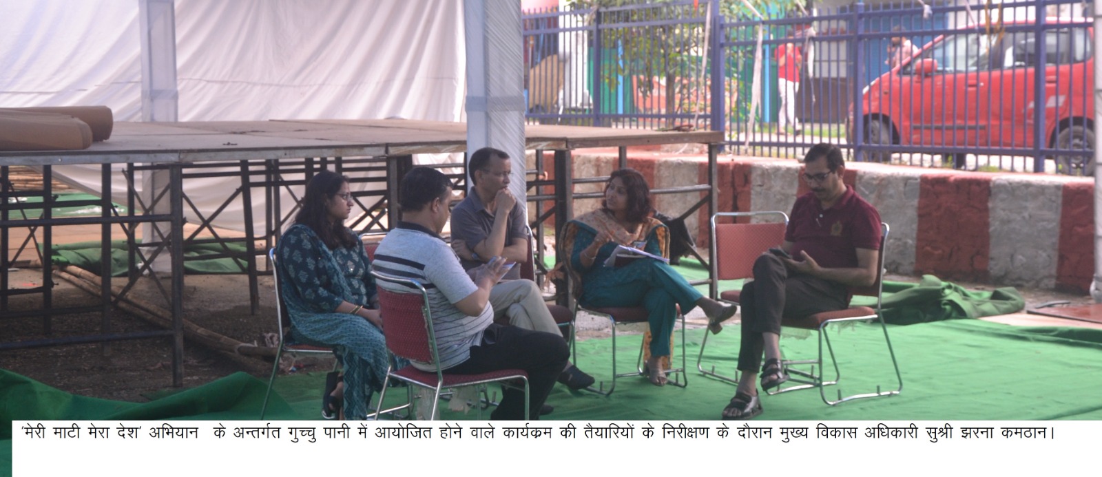 मुख्य विकास अधिकारी सुश्री झरना कमठान ने आज ‘मेरी माटी मेरा देश‘ अभियान के अन्तर्गत गुच्चु पानी में आयोजित होने वाले कार्यक्रम की तैयारियों निरीक्षण किया