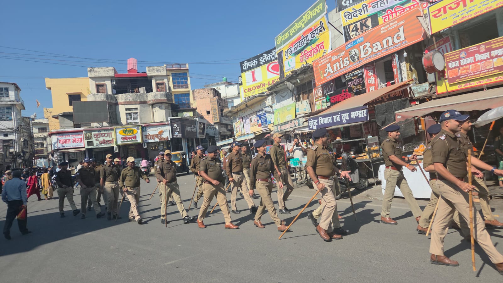 हाई अलर्ट के चलते पुलिस द्वारा प्रदेशभर में निकाले गए फ्लैग मार्च